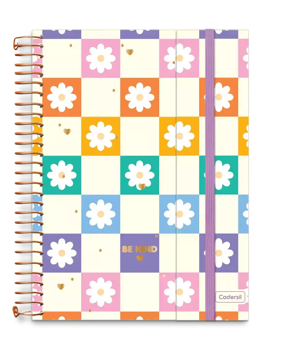 Caderno Colegial Espiralado – Criativo Capa Dura Com Aba e Elástico – 80 folhas