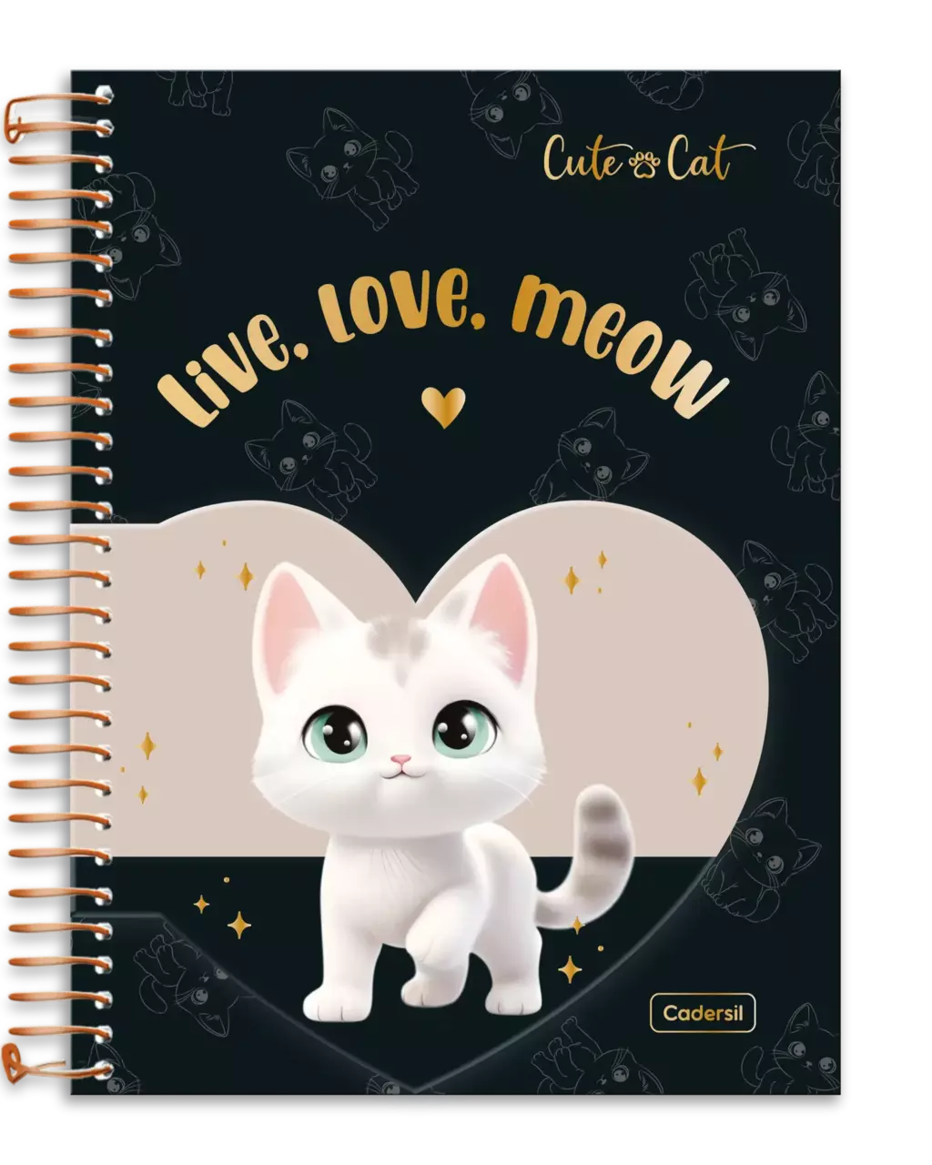Caderno Colegial Espiralado Criativo com Bloco Coração – 80 folhas
