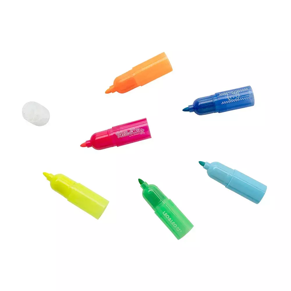 Desenhar, pintar, brincar e se divertir com aquela que é uma das mais amadas personagens do mundo todo. A Hidrocor de Encaixe 6 Cores Hello Kitty - Caixa com 1 Un Leo&Leo proporciona isso tudo e muito mais! Superdiferente, ela é uma hidrocor com o mecanismo com encaixe empilhável, isso é, uma grudada à outra, ocupando o espaço de somente uma caneta no estojo. Seu corpo é colorido e estampado com a fofa personagem Hello Kitty. São 6 cores vibrantes: amarelo, laranja, rosa, roxo, azul e verde. Assim, dá pra desenhar e deixar bem colorido, alegre e criativo. A Hidrocor de Encaixe 6 Cores Hello Kitty possui corpo com formato redondo, sendo confortável no manuseio de mãos pequenas, ideal deixar a imaginação voar longe no mundo das cores.