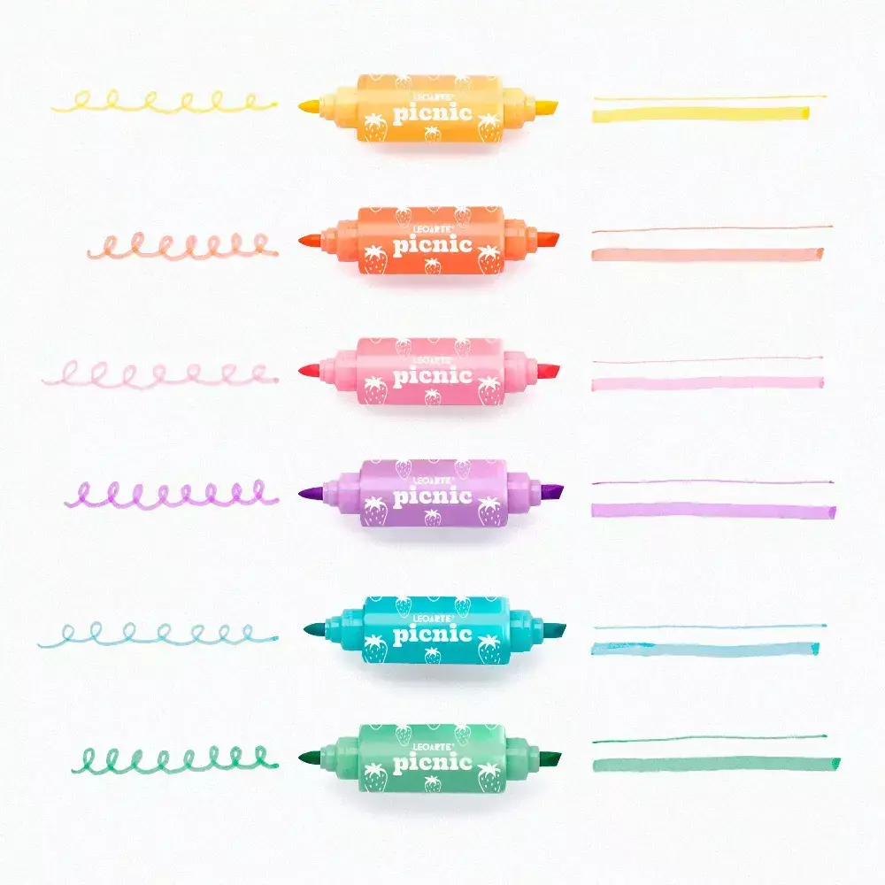 O Marca-Texto Mini 2 em 1 Bombom Picnic Estojo Leoarte tem 6 candy colors diferentes e duas pontas: uma chanfrada, que permite variar a espessura do traço de acordo com a inclinação, e uma redonda, para um realce mais fino e preciso. Além do traço de 1-3mm, 4mm, seu design exclusivo com formato mini é perfeito para levar a qualquer lugar. Garanta agora mesmo e sinta o doce sucesso de vendas.